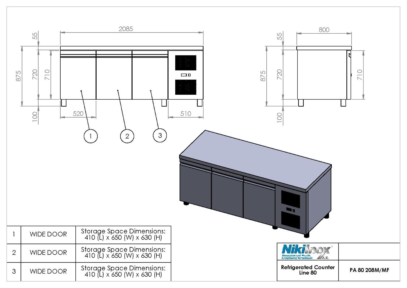 Η ψύξη βεβιασμένης κυκλοφορίας αέρα και τα οικολογικά υγρά R290 εξασφαλίζουν φιλικότητα προς το περιβάλλον και αποτελεσματική λειτουργία, καθιστώντας τον PA 80 208M την ιδανική επιλογή για ζαχαροπλαστική και αρτοποιία.