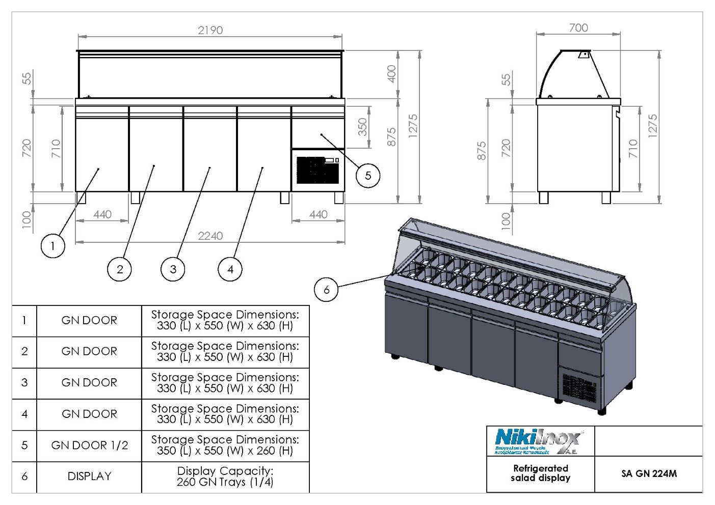 Refrigerated Salad Display with compressor SA GN 224M