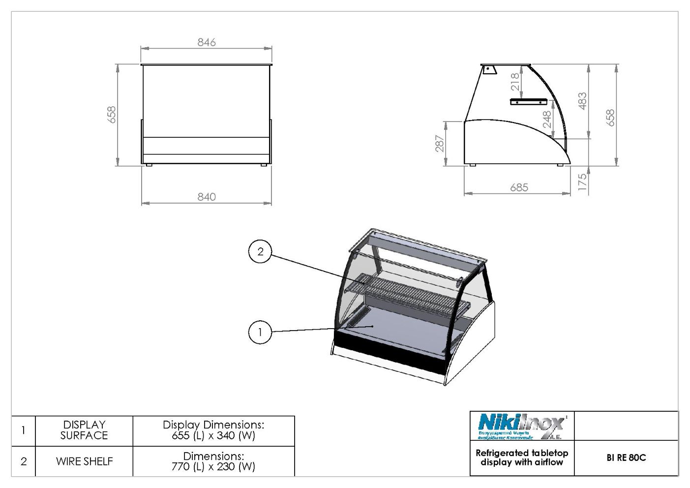 Refrigerated Tabletop Display with airflow BI RE 80C